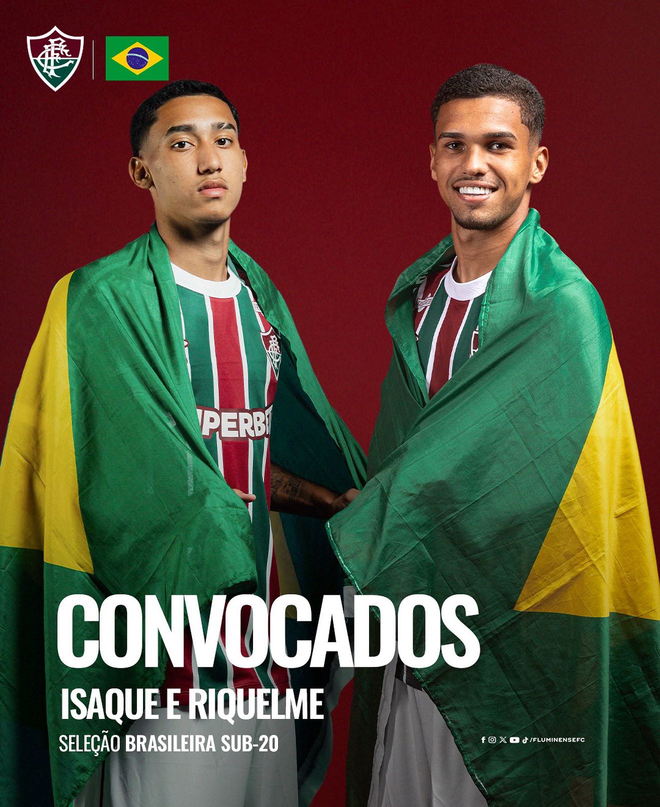 O Fluminense comunicou nesta terça-feira, (05.08), que os garotos Isaque e Riquelme estão convocados para a seleção Sub-20, que vai disputar o Mundial da categoria em setembro no Chile. A seleção vai realizar dois amistosos contra o Paraguai, agora em agosto, dias 08/08 e segunda-feira (11.08), no Centro de Alto Rendimento do Futebol Feminino (CAR-FEM), localizado em Ypané, cerca de 300km de Assunção.