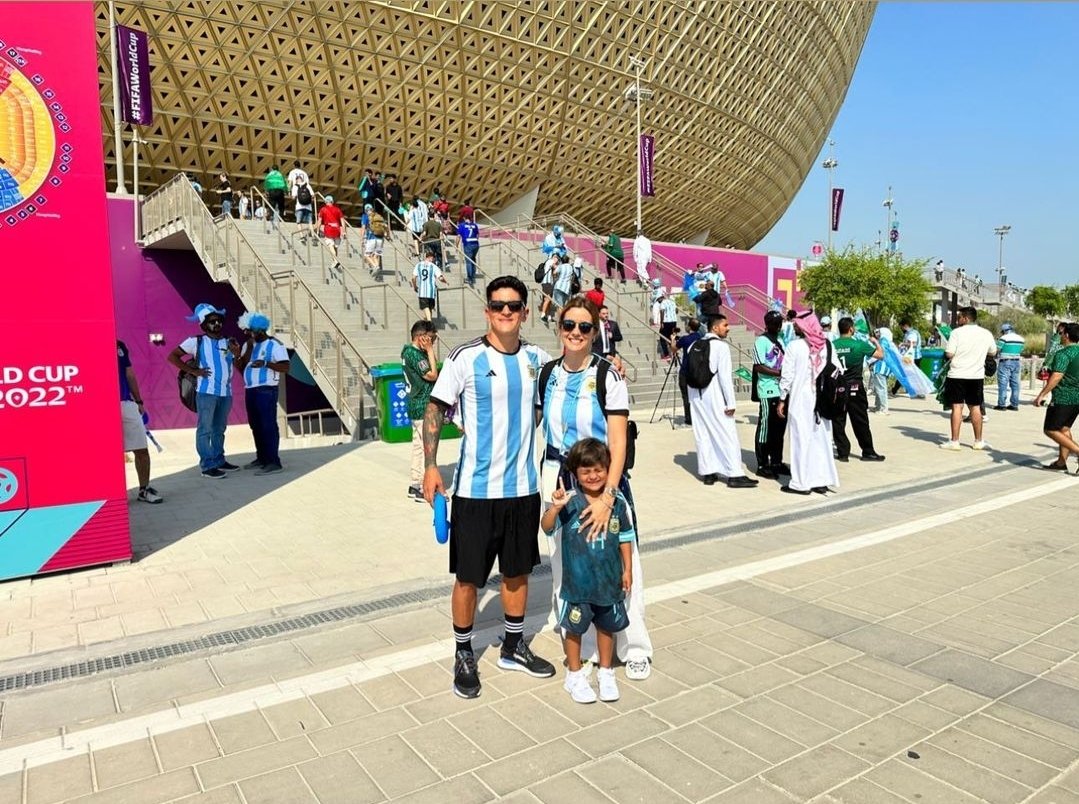 Ao lado da esposa Rocio Otero e do filho Lorenzo, o atacante reforça a torcida que vive a expectativa pela última Copa de Lionel Messi. Também existe a obsessão argentina pelo tão sonhado tricampeonato. O último título foi em 1986, ainda como Maradona como protagonista.