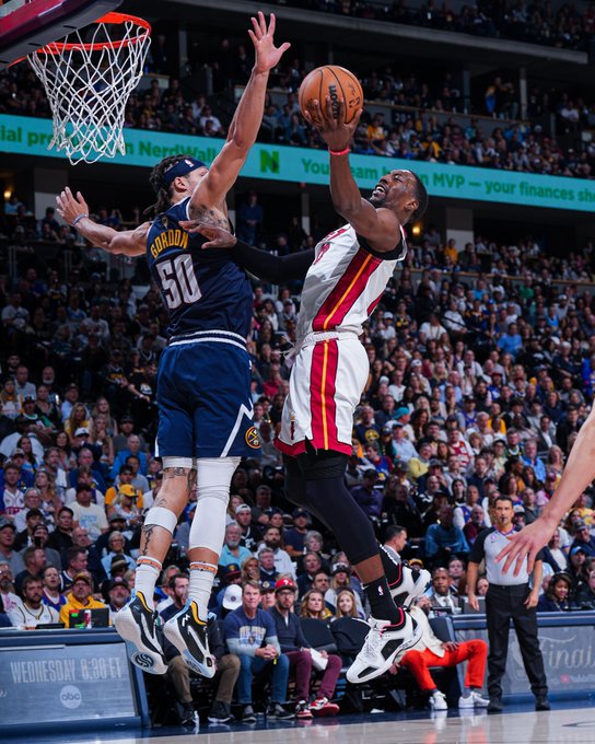 Depois de perder o primeiro jogo da decisão, o Miami Heat surpreendeu o Denver Nuggets, no Colorado, e venceu de virada por 111 a 108, empatando a série final da NBA em 1 a 1. Os Heats começaram o último quarto perdendo por oito pontos e venceram a parcial por 11 (36 a 25). Denver chegou a liderar por 15 pontos.