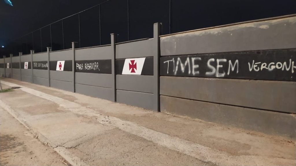 Frases como “time sem vergonha” foram grafitadas pelos torcedores