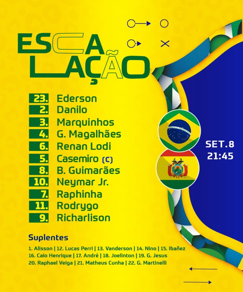 O Brasil está escalado para a estreia nas Eliminatórias da Copa diante da Bolívia; confira