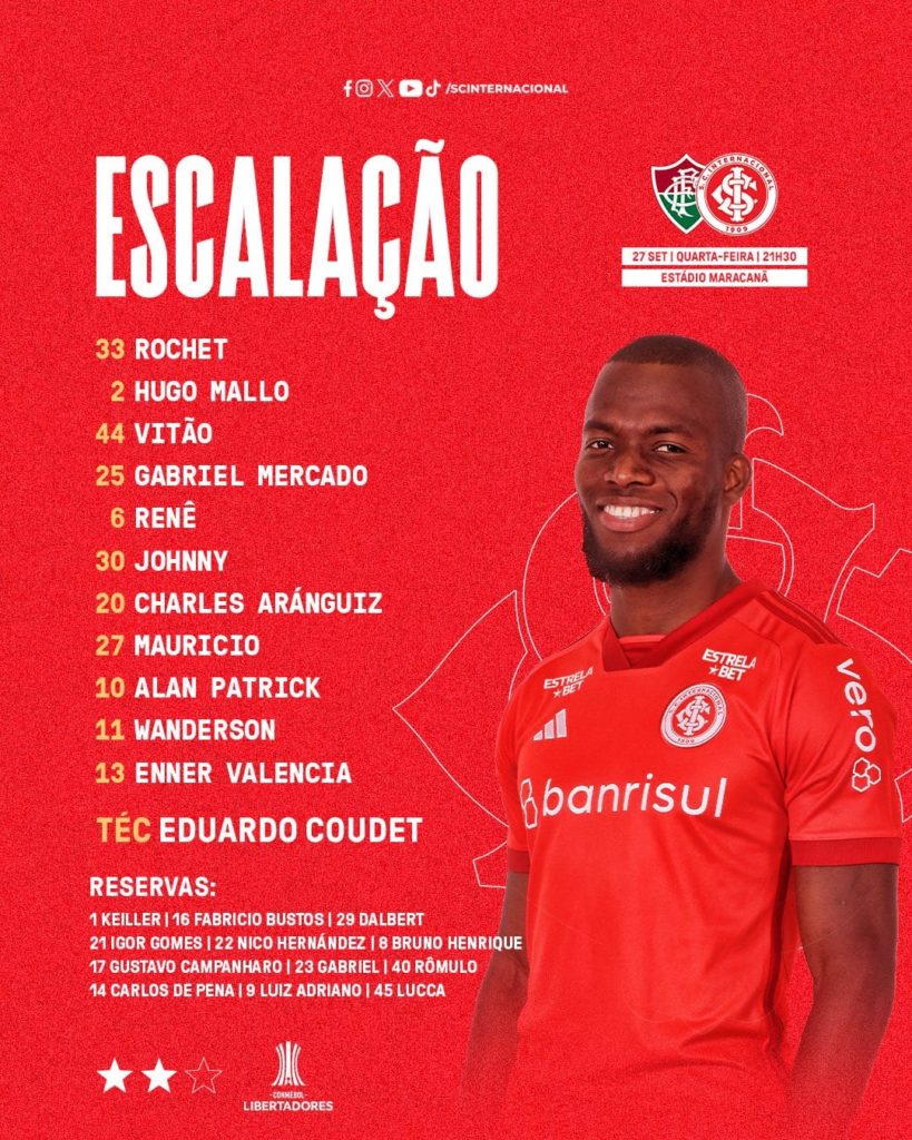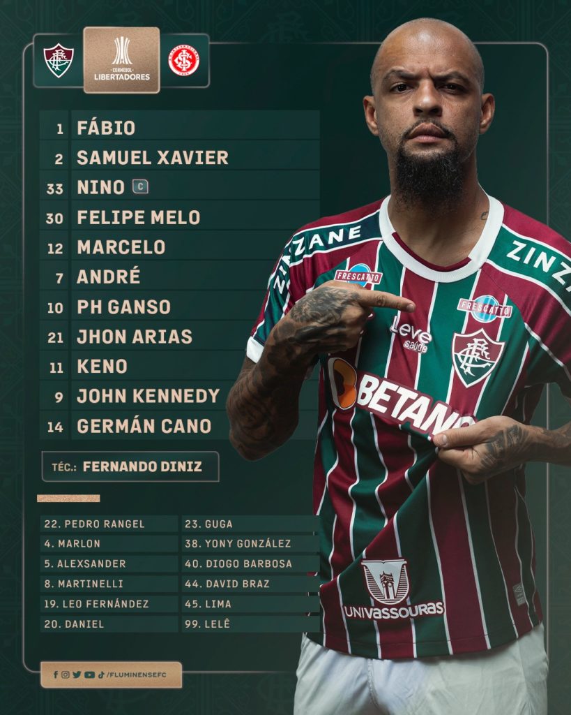 O Fluminense está escalado para o jogo de ida da semifinal da Libertadores contra o Internacional