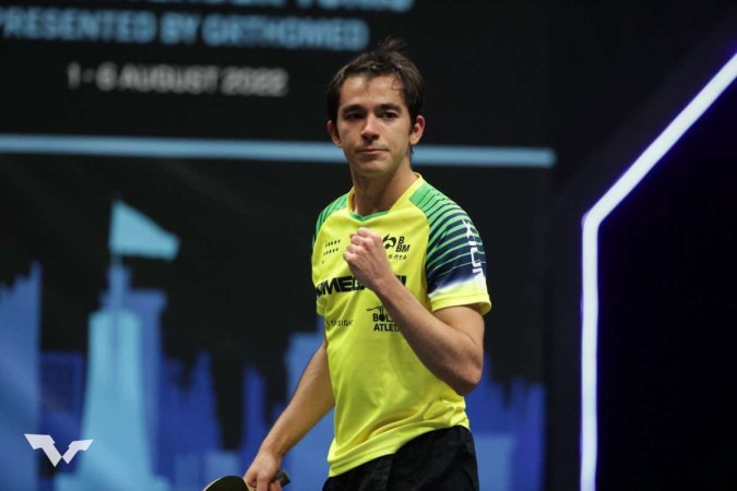 Nesta quarta-feira (31), Hugo Calderano superou o rival francês Alexis Lebrun nas oitavas de final do torneio.