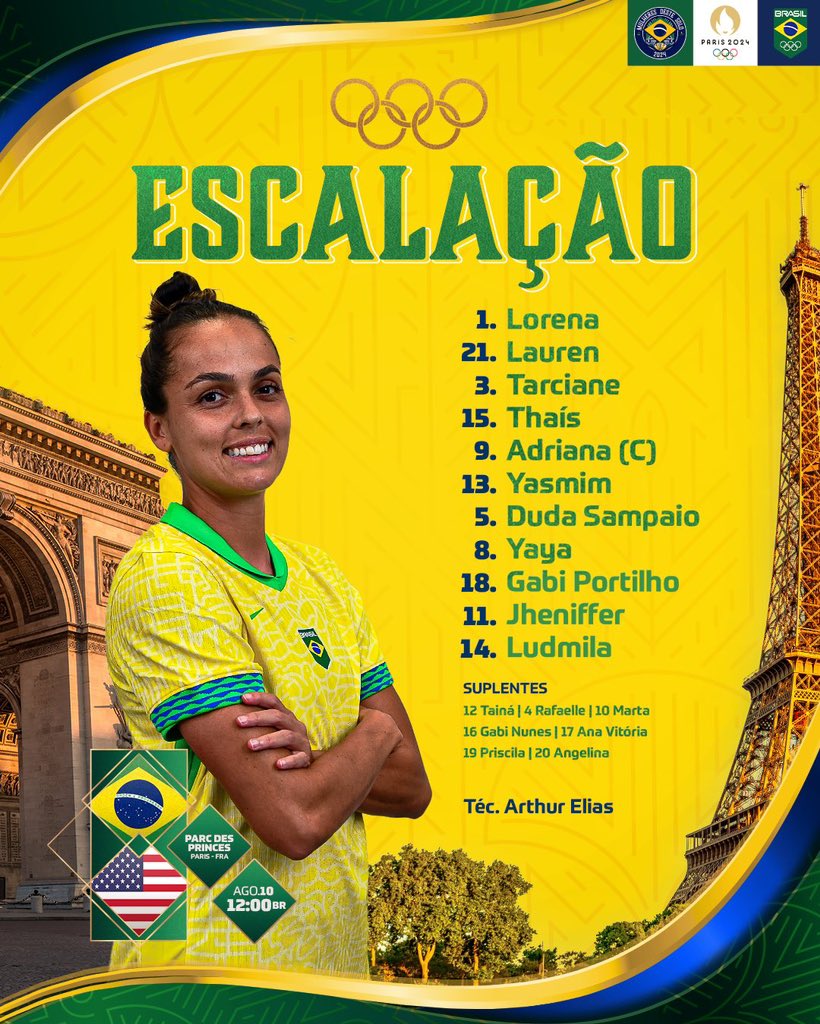 A seleção feminina de futebol está escalada para a decisão em Paris diante dos Estados Unidos.