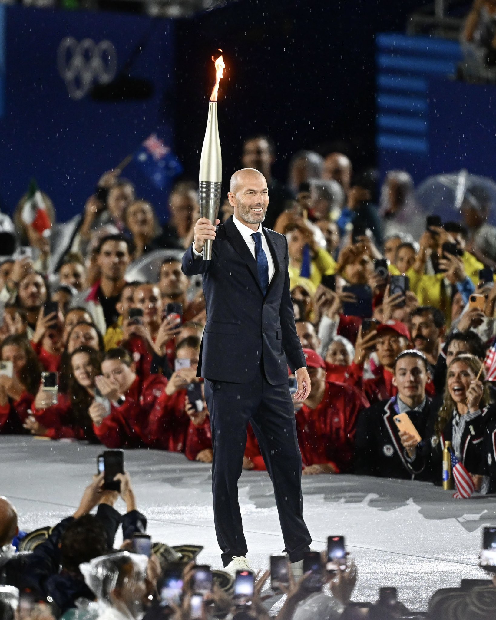 Campeão do mundo pela França, Zidane carregou a tocha, mas não acendeu a pira