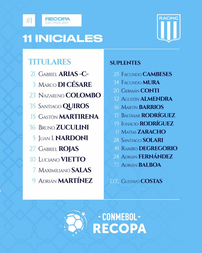 Racing e Botafogo se enfrentam na partida de ida da Recopa Sul-Americana, na Argentina. A bola rola as 21h30 e ambas equipes buscam o primeiro título da competição.