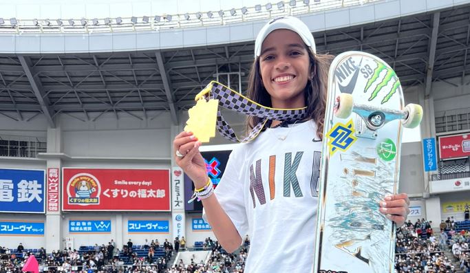 Nas redes a skatista comemorou a medalha de ouro e completou “mais uma medalha do Japão pro Brasil. Obrigada pela torcida galerinha”.