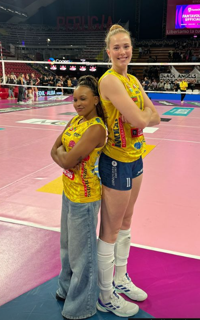 Na última quinta-feira (17), a ginasta prestigiou o jogo da amiga Gabi Guimarães, ponteira do Imoco Conegliano, no Campeonato Italiano Feminino de Vôlei