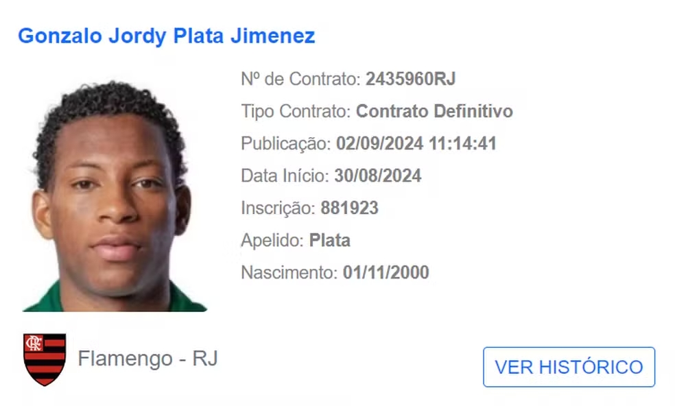 O Flamengo tem mais um reforço à disposição para a sequência da temporada. É o atacante Gonzalo Plata, que teve sua situação regularizada na CBF. O nome do equatoriano de 23 anos apareceu no Boletim Informativo Diário (BID), o que o deixa apto a estrear pelo clube carioca. Aliás, a entrevista coletiva oficial de apresentação acontecerá na próxima segunda-feira (9).