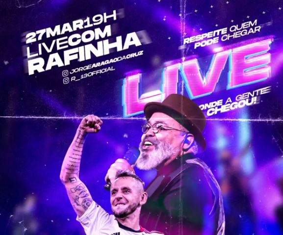 Em meio à pandemia de Covid-19 e a quarentena sugerida pelos órgãos de saúde, o lateral-direito Rafinha e o sambista Jorge Arão irão organizar uma live no Instagram nesta quinta-feira para entreter os fãs em tempos de coronavírus.