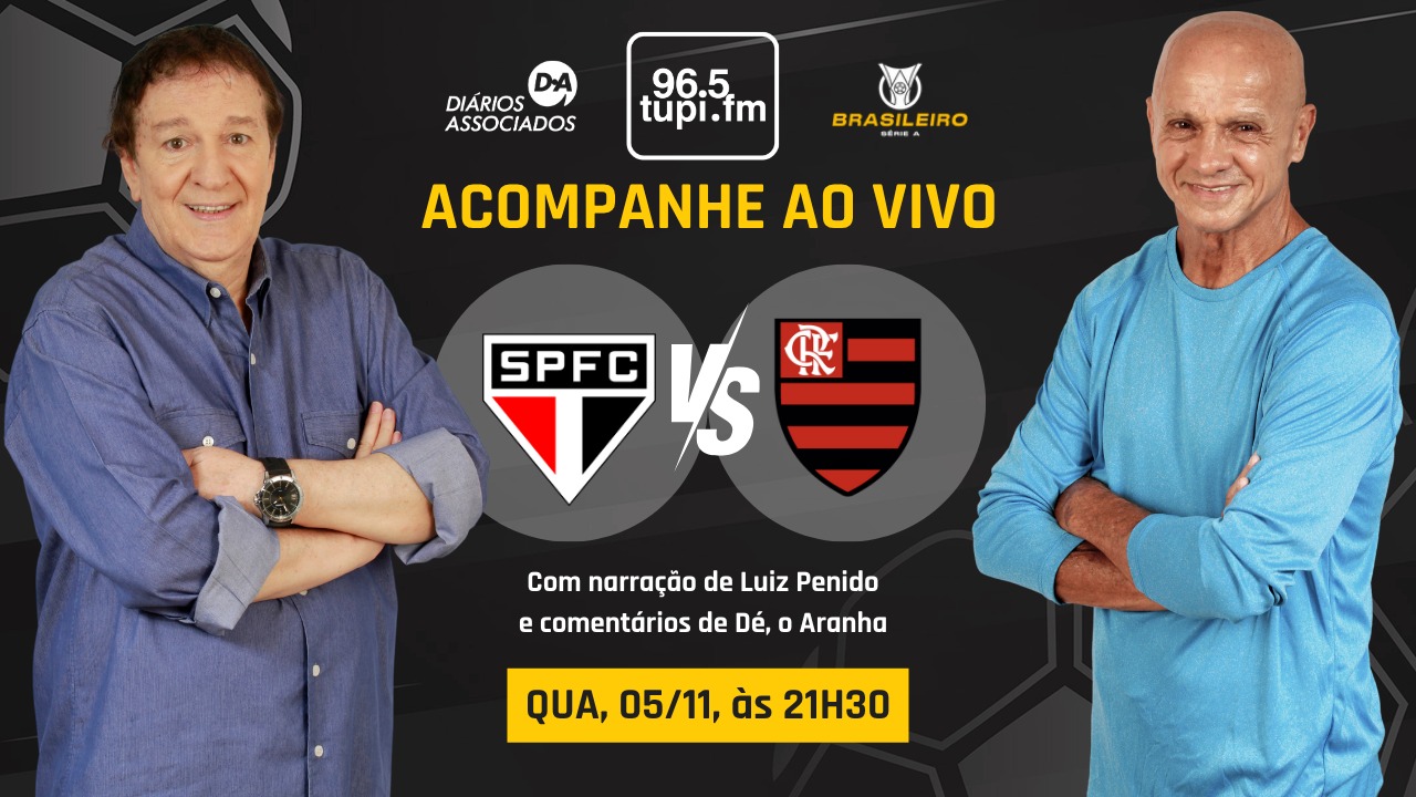 Nesta quarta-feira (5), São Paulo e Flamengo se enfrentam na Vila Belmiro em partida válida pela 32ª rodada do Campeonato Brasileiro Série A. A bola rola às 21h30, logo após a transmissão de Botafogo e Vasco, com a cobertura completa da Super Rádio Tupi. A jornada esportiva terá narração de Luiz Penido e comentários de Dé Aranha. Dessa forma, o torcedor acompanha todos os detalhes de São Paulo e Flamengo ao vivo.