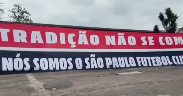 Além da frase, a faixa também exibe as três taças da Libertadores, conquistadas pelo São Paulo em 1992, 1993 e 2005. A provocação é referente ao fato do americano John Textor ter comprado 90% das ações da SAF do Botafogo e investido milhões em reforços.