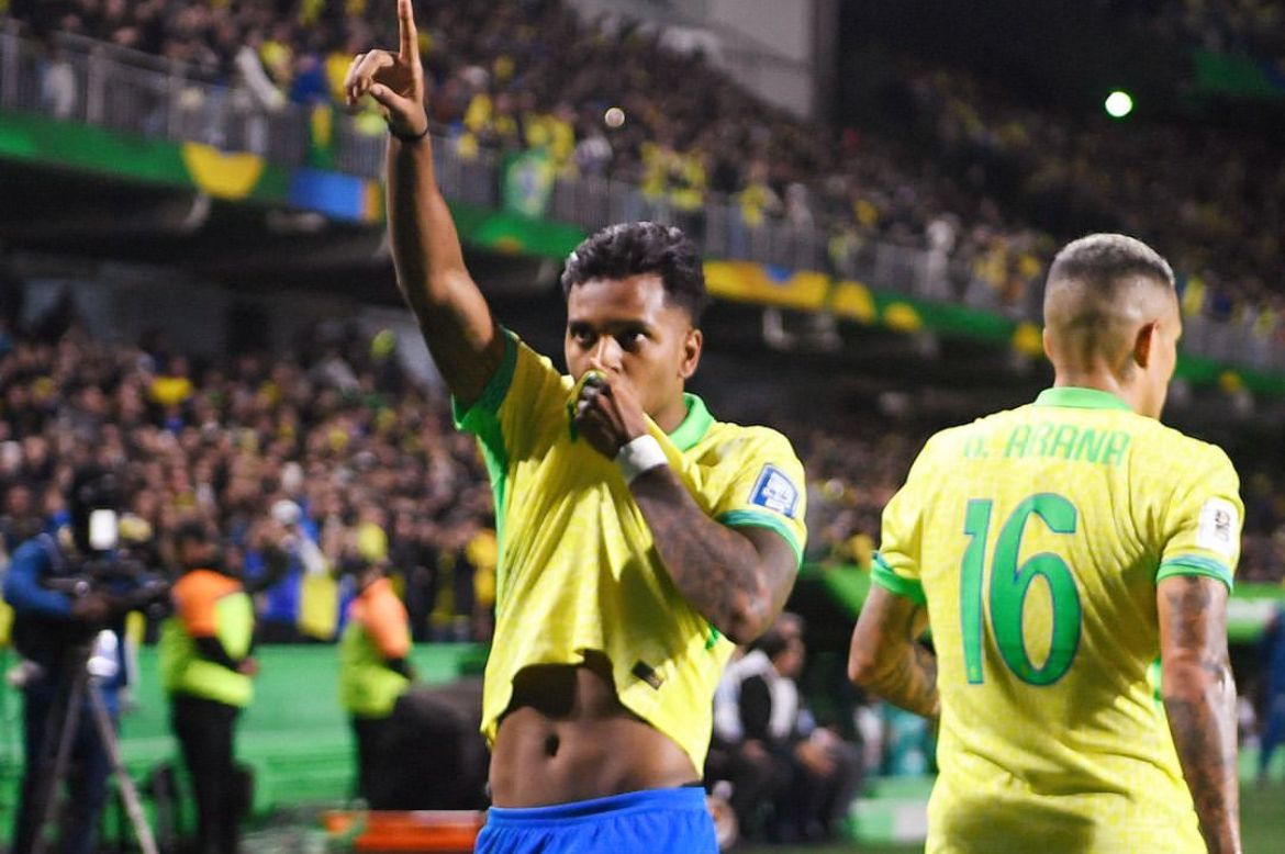 O Brasil venceu o Equador por 1 a 0, no Estádio Couto Pereira, pela 7ª rodada das Eliminatórias para a Copa do Mundo de 2026, com gol marcado por Rodrygo. O resultado deixou a Seleção na quarta posição com dez pontos, enquanto os equatorianos estão em sexto com oito. Estevão e Luiz Henrique estrearam pela Canarinho.