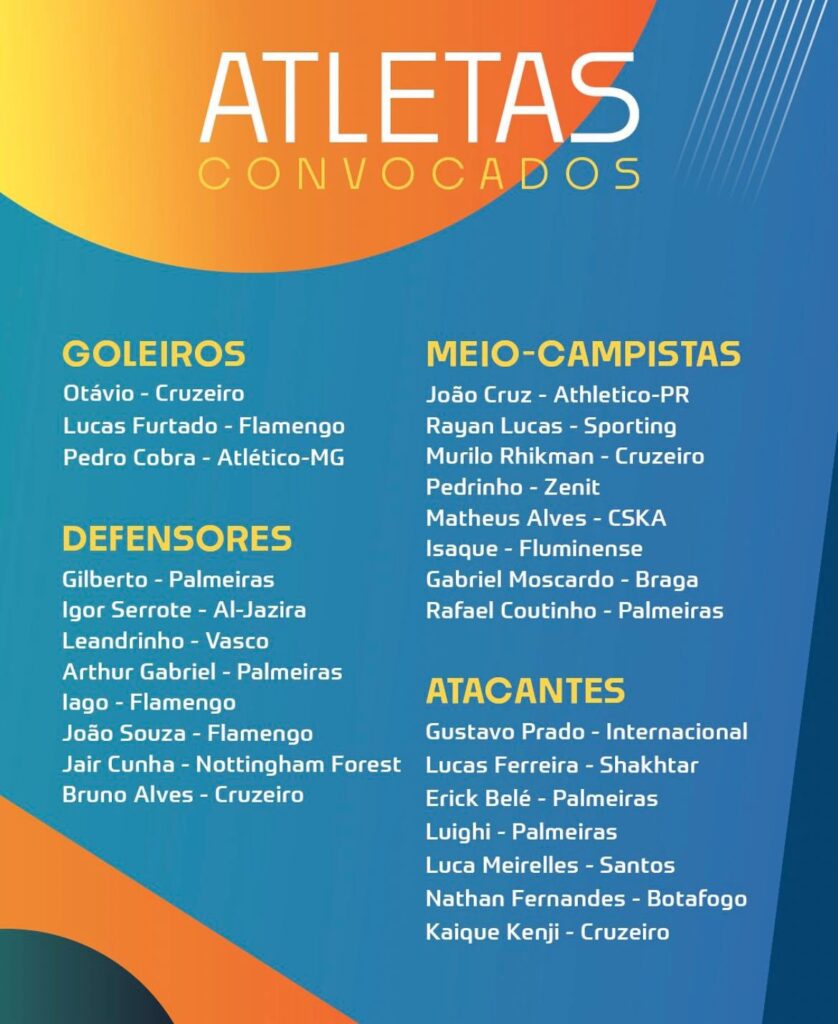 No total, 26 jogadores foram convocados para a concentração em Atibaia (SP), que acontecerá de 1º a 9 de setembro. Os treinamentos serão realizados no CT do Red Bull Bragantino, e a comissão técnica prevê dois jogos-treino durante esse período.