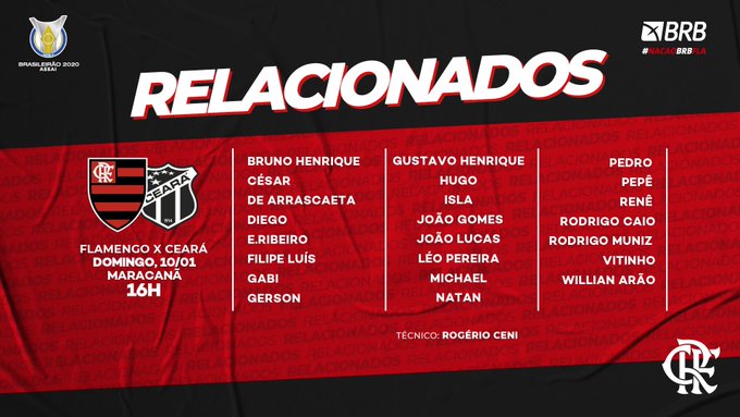 Dos titulares, a ausência segue sendo Diego Alves. O goleiro ainda não está recuperado de uma lesão muscular da coxa direita que o tirou dos últimos dois jogos. Hugo Souza tende a ser o titular no gol mais uma vez. No setor ofensivo, Vitinho, que ficou de fora do Fla-Flu por estar suspenso, vira opção mais uma vez. Confira a relação completa para o jogo que está marcado para 16h deste domingo, no Maracanã: