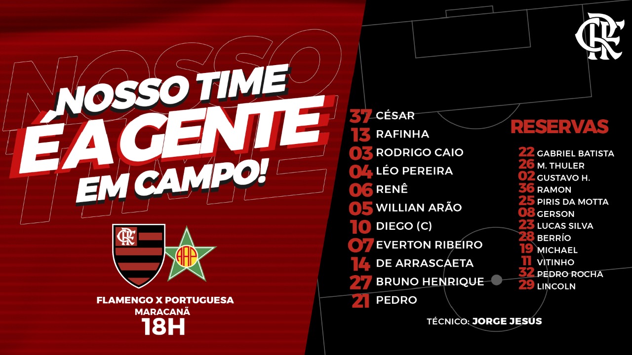 Partida será disputada com portões fechados por conta do coronavírusO Flamengo está escalado para enfrentar a Portuguesa na tarde deste sábado no Estádio do Maracanã. Jorge Jesus optou por poupar alguns jogadores titulares. O jogo será disputado com portões fechados por conta da pandemia do novo coronavírus.