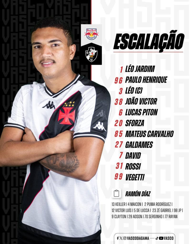 Sem Medel, Vasco está escalado para enfrentar o RB Bragantino