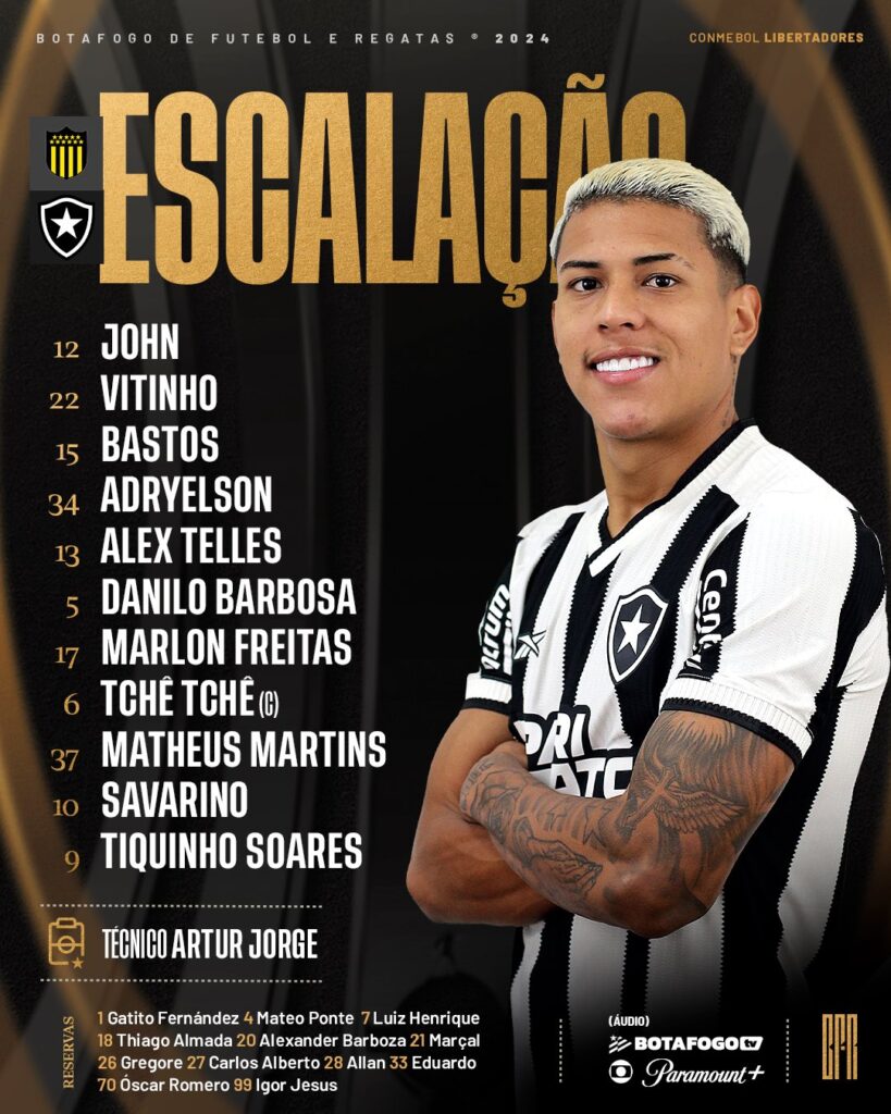 O Botafogo está pronto e definido para confirmar a classificação inédita à decisão da Libertadores. Na noite desta quarta-feira (30), às 21h30, de Brasília, faz o jogo de volta das semifinais contra o Peñarol, no Estádio Centenário, em Montevidéu. Para essa partida, o técnico Artur Jorge faz cinco mudanças na formação em relação ao duelo de ida.