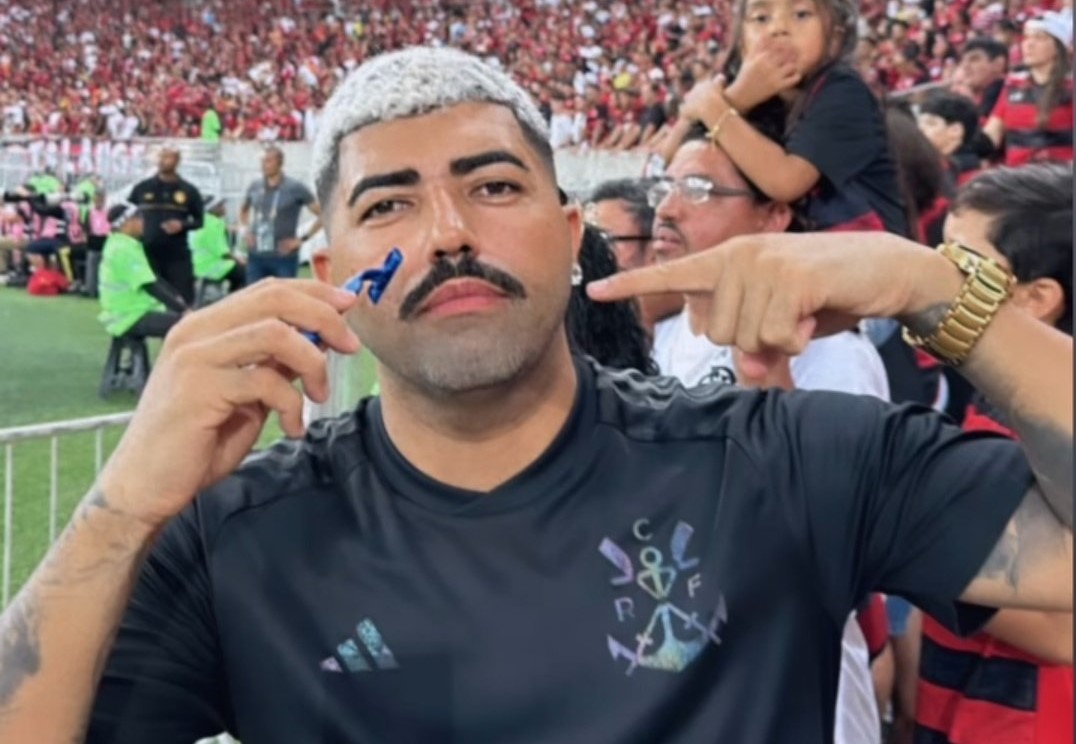 Jefferson Sales, conhecido como “Gabigol da Torcida”, viralizou diversas vezes por conta da sua velocidade em mudar de aparência de acordo com as alterações feitas pelo atacante do Flamengo. No caso do jogo de terça, Gabigol, que estava de bigode nos dias anteriores, tirou a barba, pegando o sósia de surpresa já dentro do estádio.