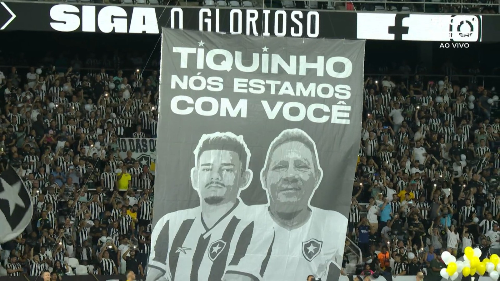 O atacante Tiquinho Soares recebeu uma homenagem por parte da torcida do Botafogo na noite desta quarta-feira (19). Os torcedores ergueram um bandeirão com a frase “Tiquinho, nós estamos com você” e uma foto do jogador e o pai dele.