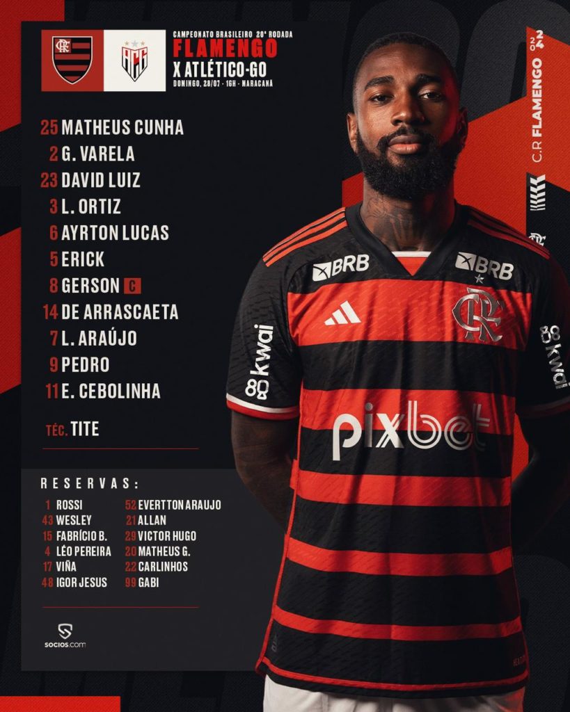 O Flamengo está definido para enfrentar o Atlético-GO, no Maracanã, às 16h. Com time misto/reserva, Tite poupou alguns jogadores visando a partida do meio de semana, contra o Palmeiras, pela Copa do Brasil.