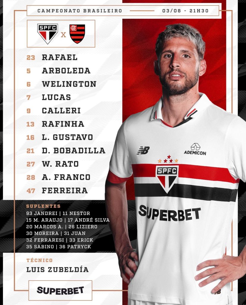 Assim como seus rivais na rodada do Campeonato Brasileiro, o Flamengo vem a campo com várias mudanças para enfrentar o São Paulo. Na noite deste sábado, a bola rola às 21h30, no Morumbi, e o técnico Tite decidiu escalar equipe alternativo. Isso porque, na quarta (7), faz decisão da vaga diante do Palmeiras pelas oitavas de final da Copa do Brasil, no Allianz Parque.