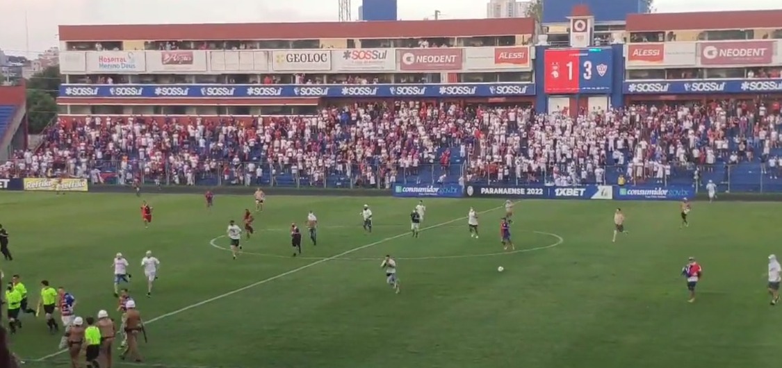 Pelas imagens, é possível notar o momento em que alguns presentes tiveram fácil acesso aos jogadores. Num primeiro momento, alguns atletas do Paraná ainda tentaram fazer resistência, mas todos deixaram o gramado quando o número de invasores aumentou.