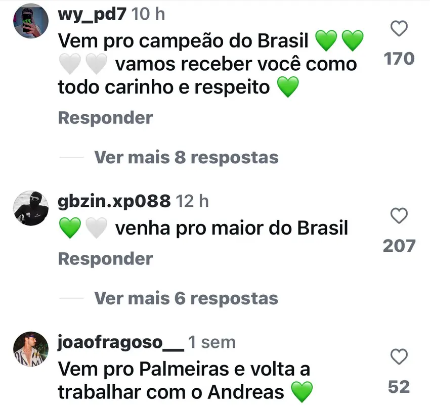 Diante deste cenário, diversos palmeirenses foram nas redes sociais de Gerson para pedir que ele realmente se transfira para o Verdão.