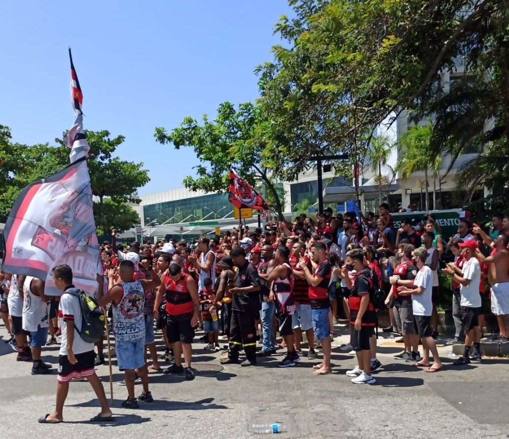 Torcedores do Flamengo fizeram festa no embarque da delegação do Flamengo para São Paulo, onde o time enfrenta o Tricolor paulista nesta quinta-feira, às 21h30, no Morumbi, pela 38ª rodada. A guarda municipal tentou organizar a aglomeração, mas não controlou a euforia da torcida. A concentração foi no estacionamento do aeroporto Santos Dumont, inclusive com muitas pessoas sem máscara.