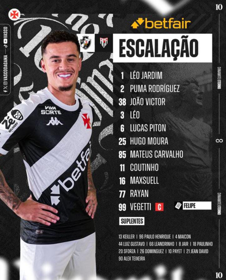 Com Coutinho, Vasco está escalado para jogo contra o Atlético-GO - Super Rádio Tupi