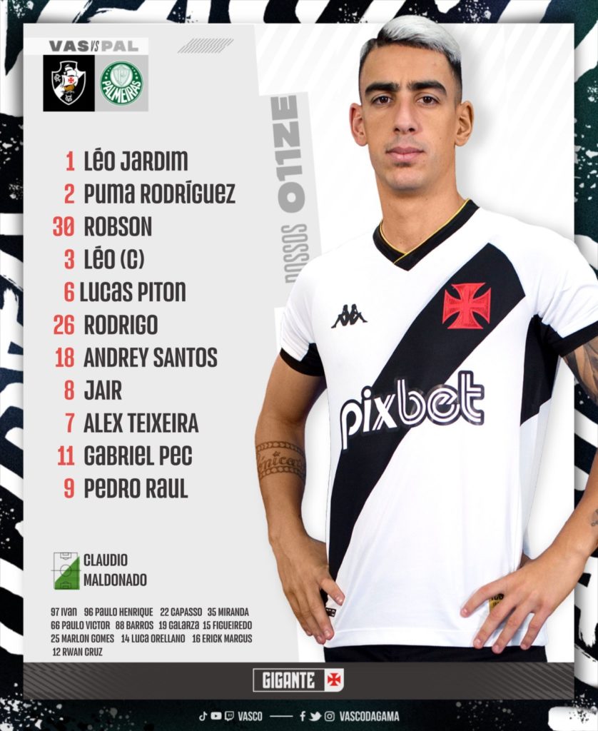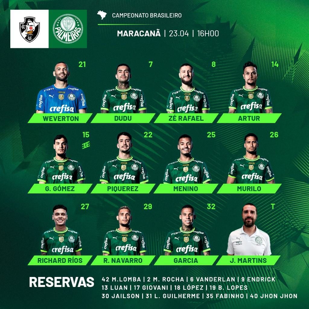 Com força máxima, Vasco está escalado para enfrentar o Palmeiras