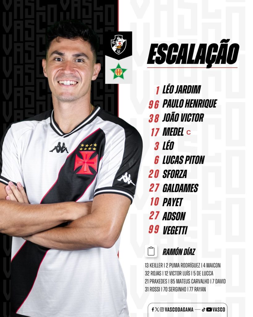 Com novidades, Vasco está escalado para o jogo contra a Portuguesa