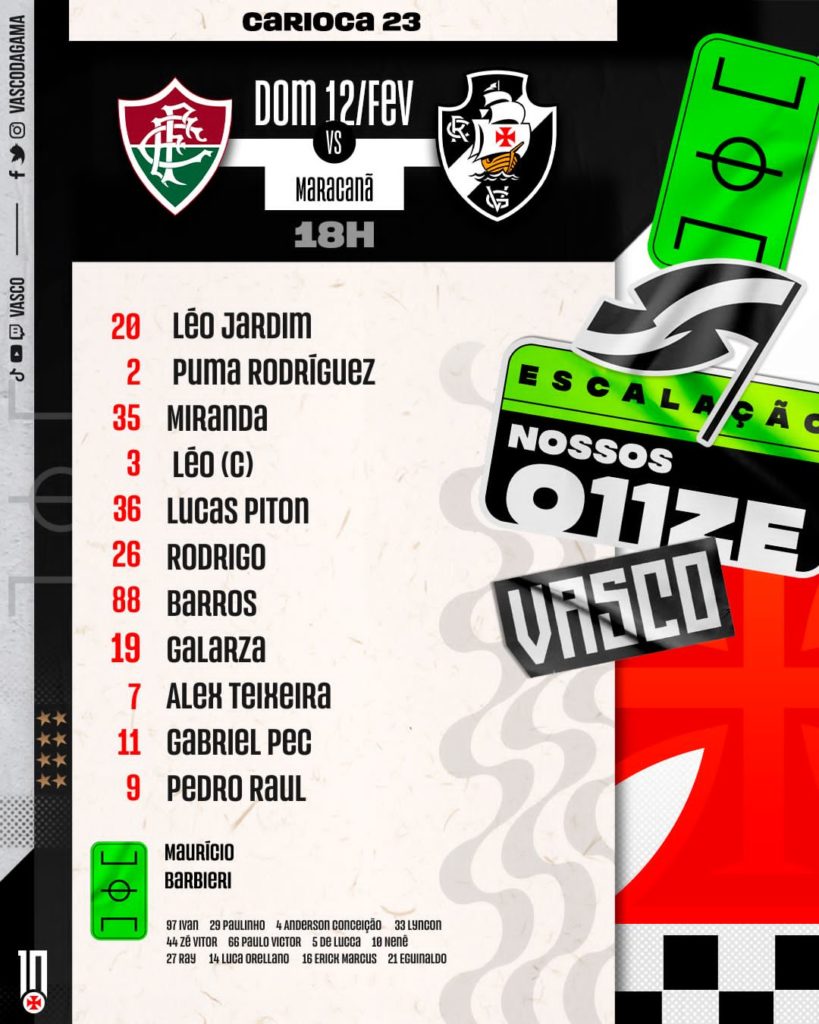 Dia de clássico! Fluminense e Vasco estão escalados para se enfrentarem no Carioca