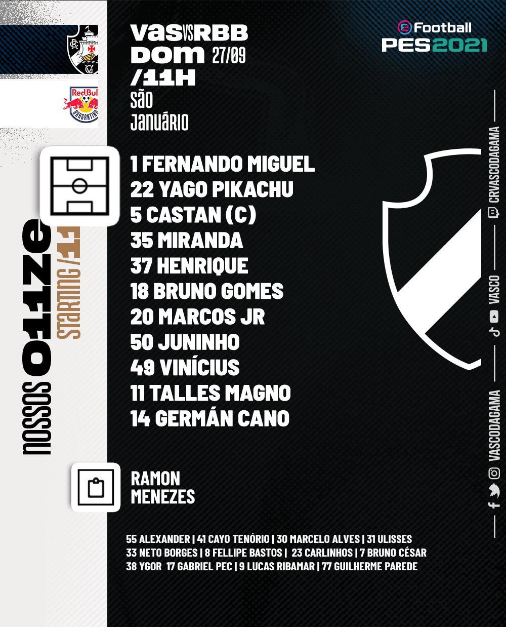 Vasco e Red Bull Bragantino se enfrentam neste domingo (27/09), às 11h, pela 12ª rodada do Campeonato Brasileiro. Eliminado da Copa do Brasil no meio da semana e com duas derrotas nos últimos três jogos do Brasileirão, o cruz-maltino, que começou muito bem a competição, sendo até mesmo líder, busca recuperar o bom momento. O massa bruta, por sua vez, vem de uma vitória de 4 a 2 em cima do Ceará.