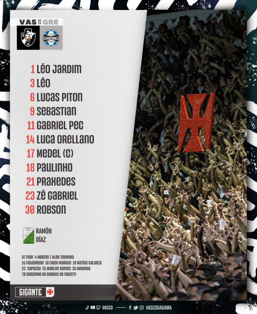 Vasco está escalado para enfrentar o Grêmio em São Januário