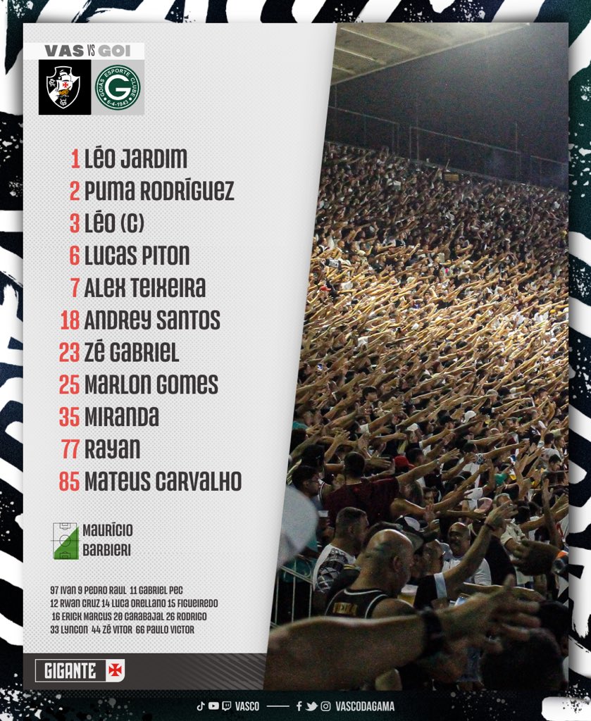 Vasco está confirmado para a partida contra o Goiás pelo Campeonato Brasileiro