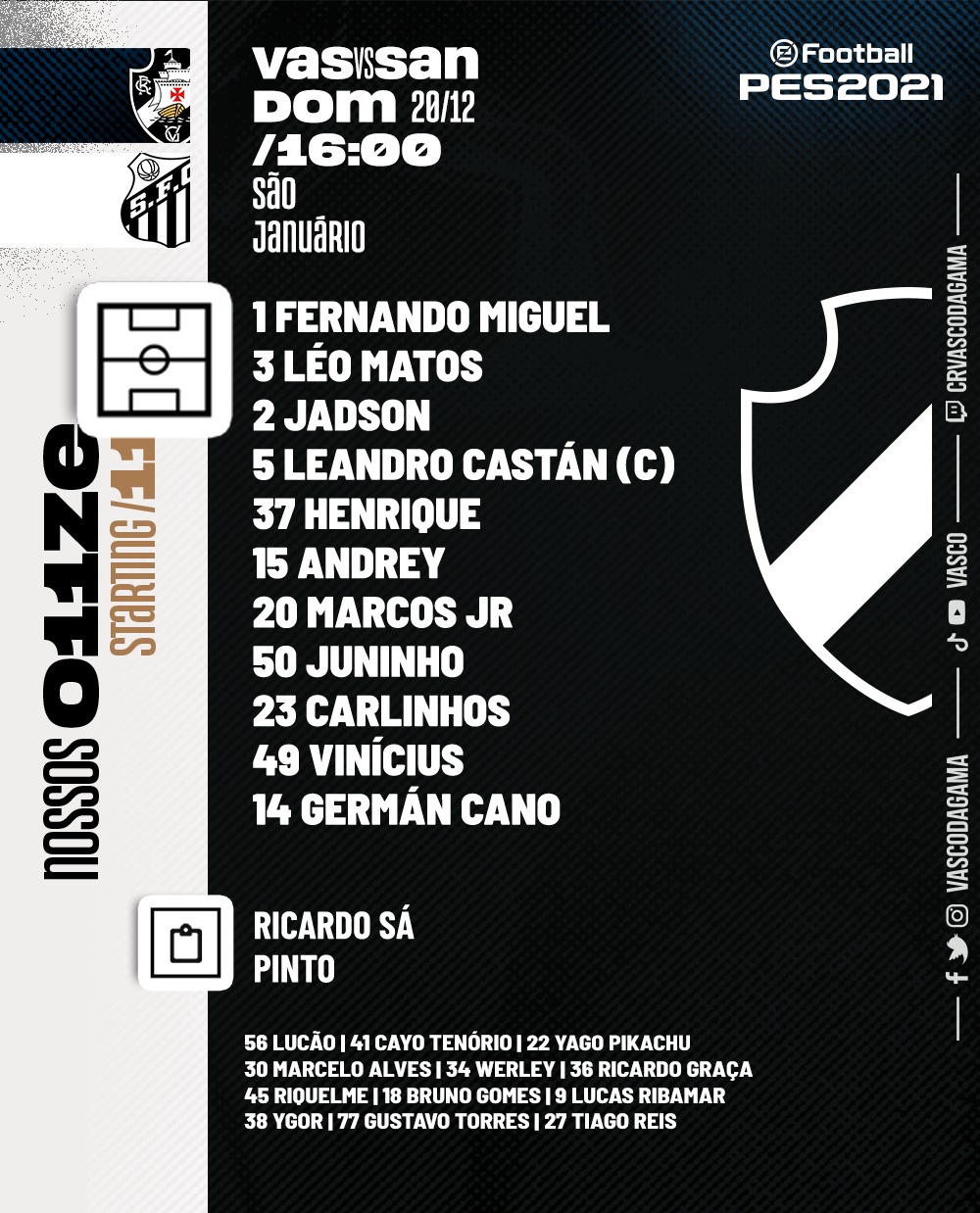 Vasco está escalado para enfrentar o Santos pelo Campeonato Brasileiro - Super Rádio Tupi