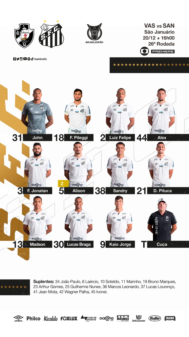 Vasco está escalado para enfrentar o Santos pelo Campeonato Brasileiro