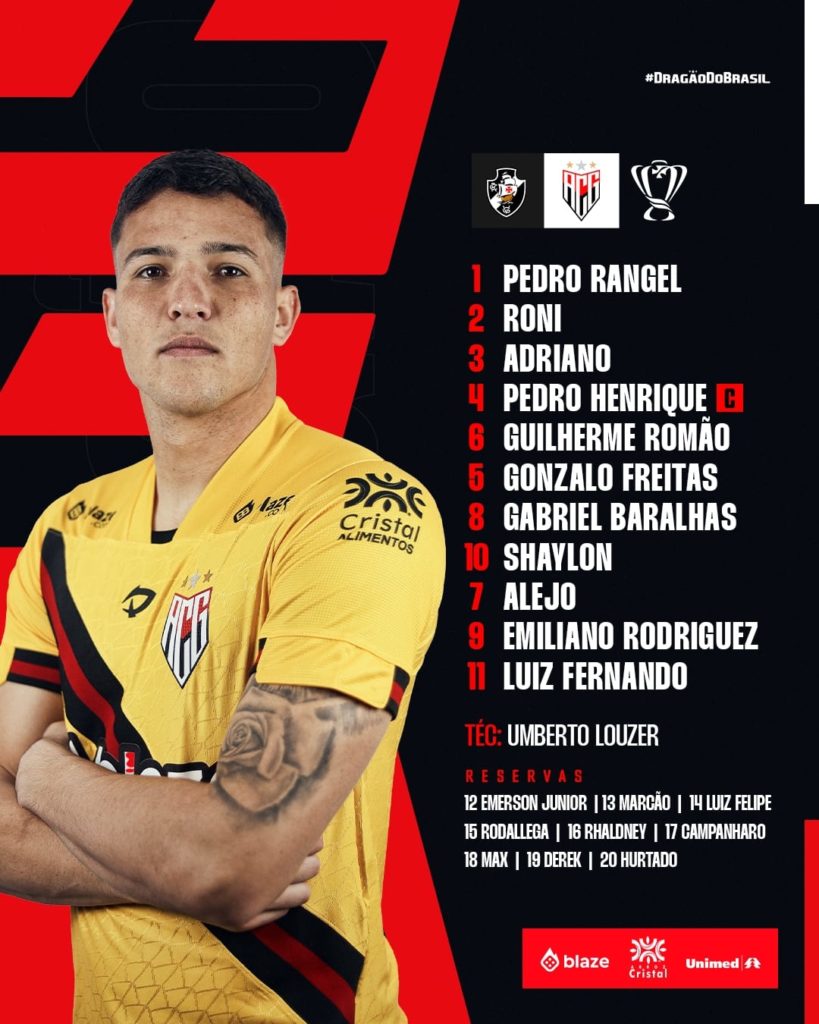 Vasco está pronto para enfrentar o Atlético-GO pela Copa do Brasil; confira escalação