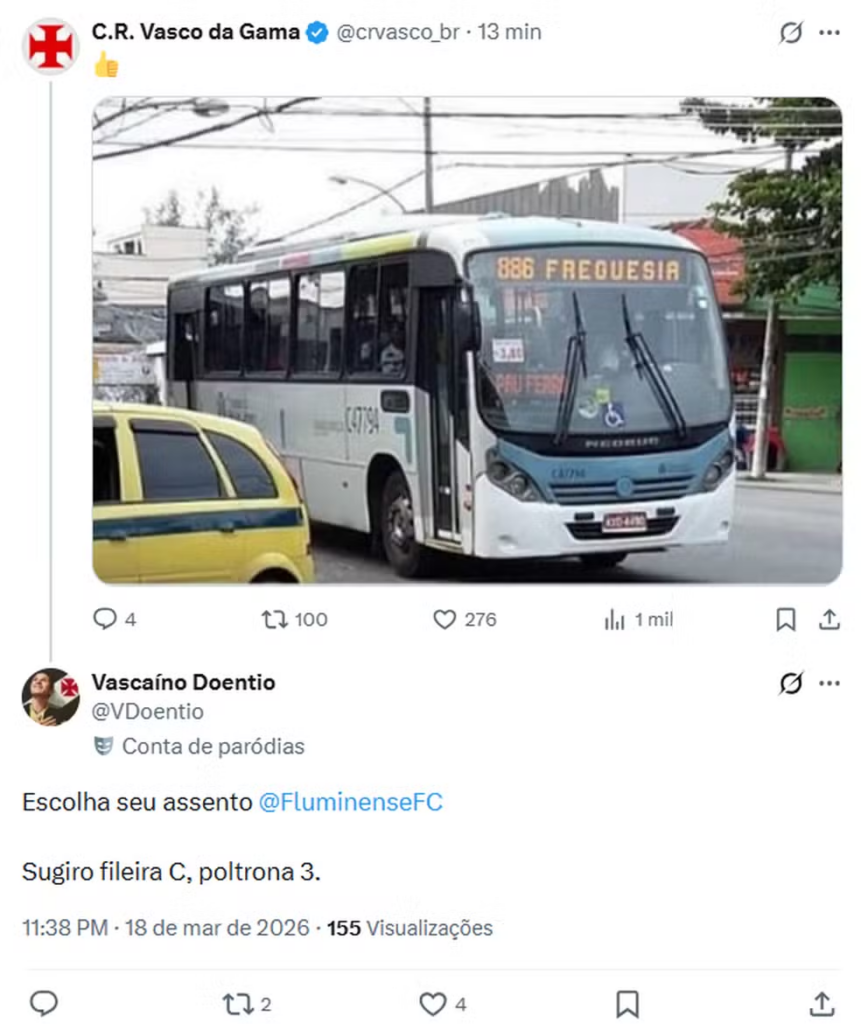 O cenário, porém, mudou na reta final. O Vasco reagiu com gol de Nuno Moreira, empatou com Spinelli e, já nos acréscimos, Thiago Mendes garantiu a virada em São Januário, levando a torcida ao delírio e dando combustível para a festa e as provocações nas redes sociais.