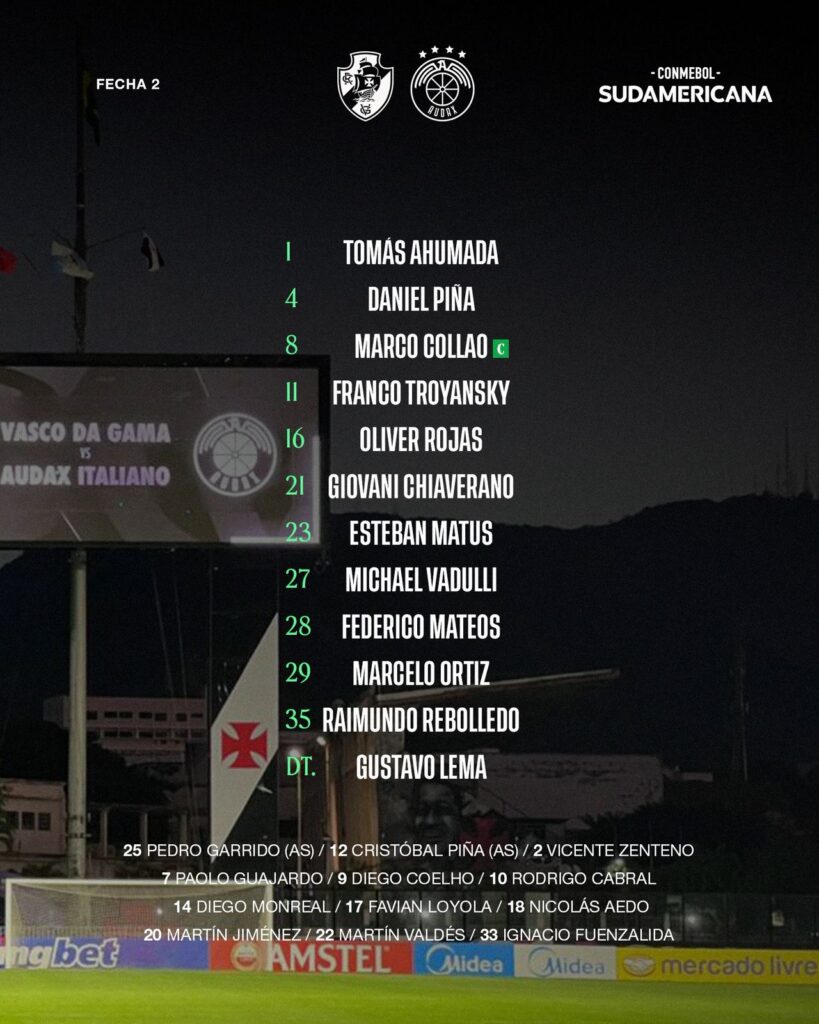 Confira as escalações de Vasco x Audax Italiano