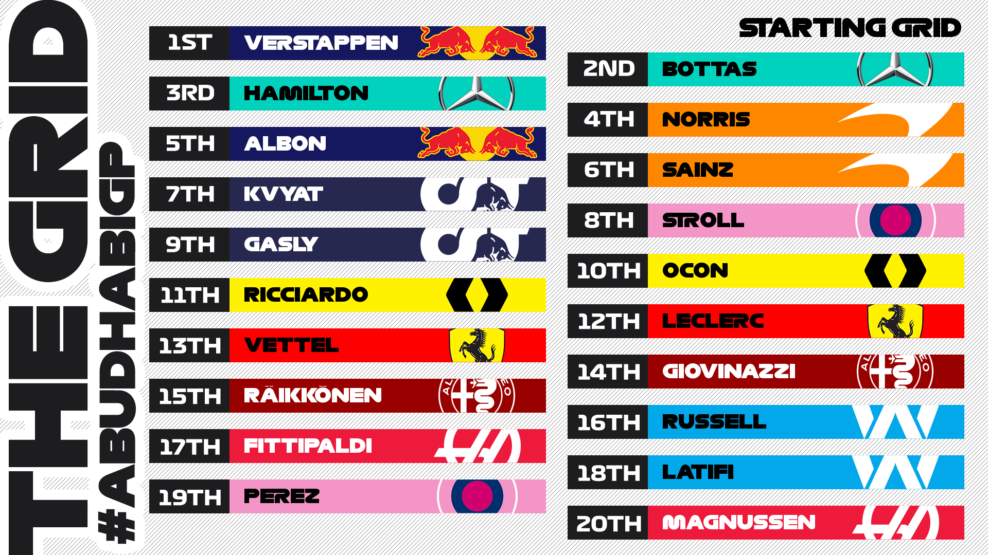Holandês larga em primeiro no GP de Abu Dhabi; Bottas sai em segundo, Hamilton em terceiro e Fittipaldi em 17º