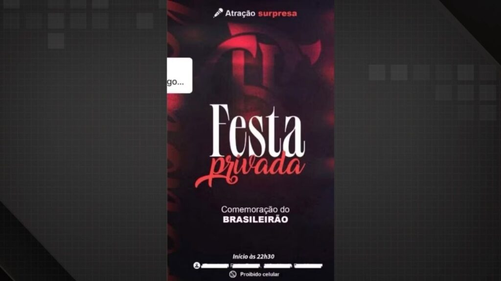O flyer de divulgação classificava o evento como privado e estabelecia regras como entrada apenas com nome na lista, proibição de celulares e a orientação de que convidados não poderiam levar outras pessoas. O funkeiro MC Poze participou da festa e deixou o local já de dia, acompanhado por um motorista e uma mulher vestindo camisa do Flamengo.
