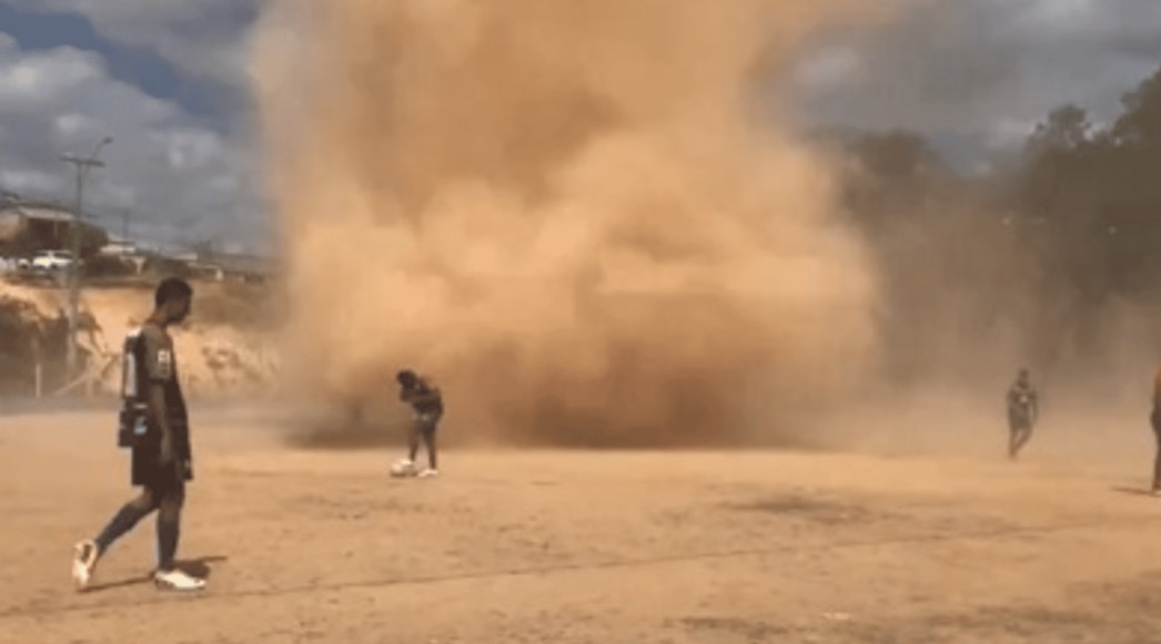 Vídeo: redemoinho gigante interrompe jogo de futebol e viraliza nas redes sociais