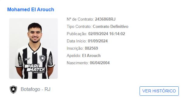 O Botafogo inscreveu dois reforços nesta segunda-feira. O lateral-direito Vitinho e o meia-atacante El Arouch tiveram os nomes publicados no Boletim Informativo Diário (BID) da CBF. Ambos estão liberados e podem estrear com a camisa alvinegra.
