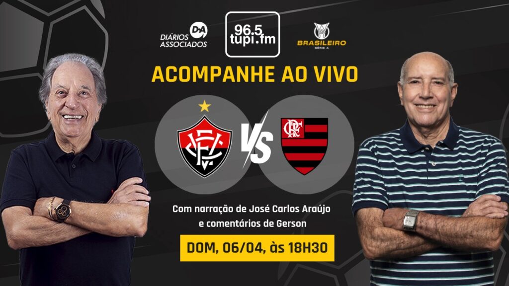 O jogo entre Vitória e Flamengo será transmitido ao vivo pelo Premiere, canal por assinatura via pay-per-view. A partida, é claro, também terá transmissão ao vivo da Super Rádio Tupi pelo dial 96,5 FM, no site Tupi.fm e no YouTube. O confronto na Tupi tem narração de José Carlos Araújo, o Garotinho, e comentários de Gerson, o Canhotinha de Ouro.