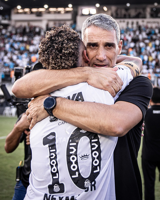 Nesta quinta-feira (22), Neymar marcou presença na Vila Belmiro para assistir ao empate de 1 a 1 entre Santos e Corinthians. O craque santista segue em processo de reabilitação após passar por um procedimento cirúrgico no menisco do joelho esquerdo no encerramento do ano passado. O técnico da equipe, Juan Pablo Vojvoda, aproveitou a ocasião para enaltecer a dedicação do atleta durante este período de recuperação.