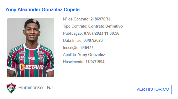 Reforço contratado para a sequência da temporada, o atacante Yoni Gonzales teve seu nome publicado no Boletim Informativo Diário da CBF nesta sexta-feira e está liberado para fazer a reestreia pelo Fluminense no próximo domingo, às 16h, contra o Internacional, pelo Campeonato Brasileiro.