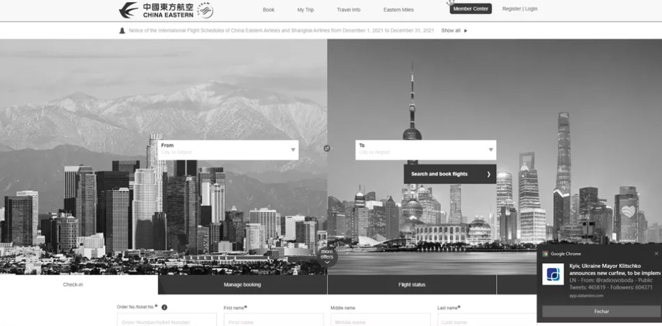 O site da China Eastern airlines colocou o site da companhia em preto e branco como forma de luto por conta do acidente.