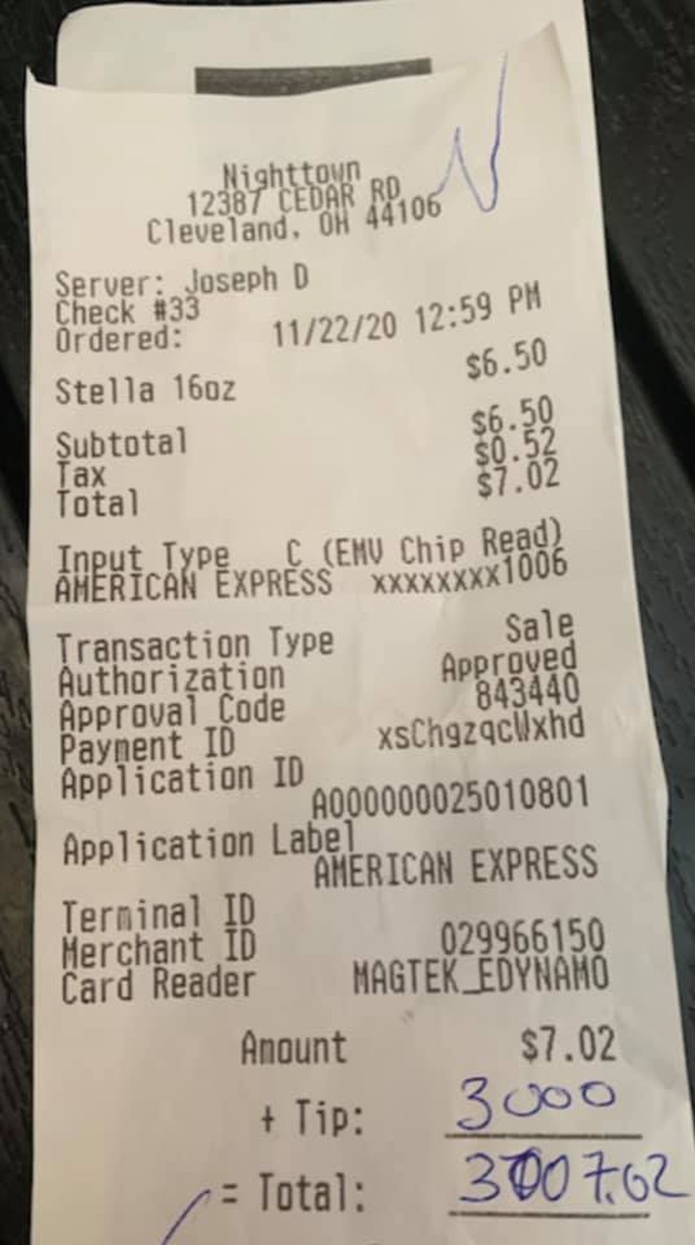 Um homem deixou uma gorjeta de US$ 3 mil aos funcionários de um restaurante em Cleverland, nos Estados Unidos, que fechou voluntariamente para ajudar a conter a disseminação do novo coronavírus. O valor doado equivale a mais de R$ 16 mil, com a cotação atual.
